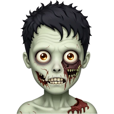 menino com cabelo cacheado e olhos marrons, com aparencia de zumbi emoji