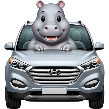 Hippo driving a silver HYUNDAI TUCSON SUV emoji