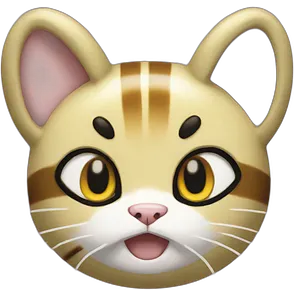 Meowth from Pokémon gold coin on front of head and black ears emoji