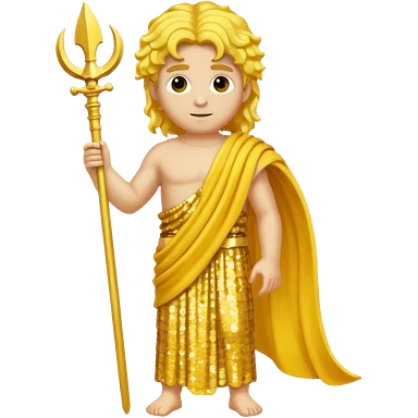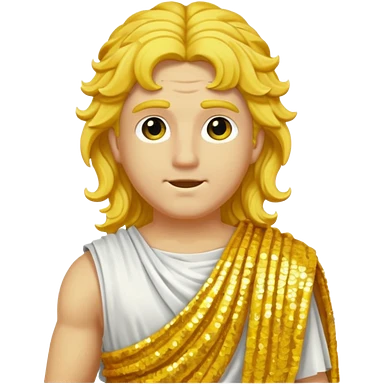 Apollo from Roman Deities with long yellow wavy hair, yellow sequin toga emoji