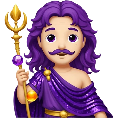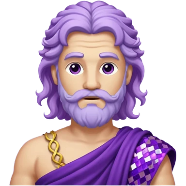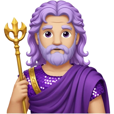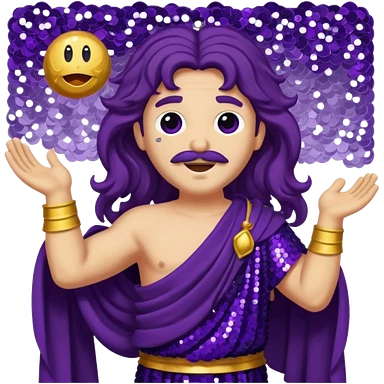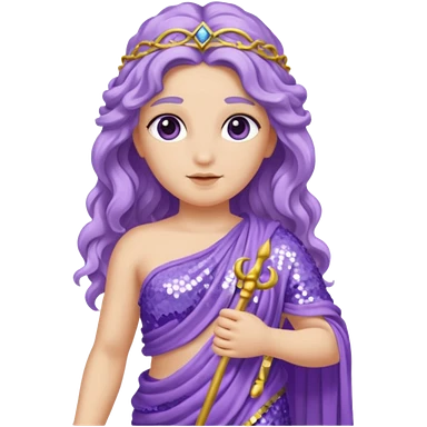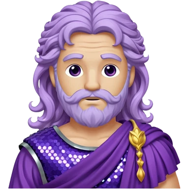 Zeus from Roman Deities with long lilac wavy hair, purple sequin toga emoji