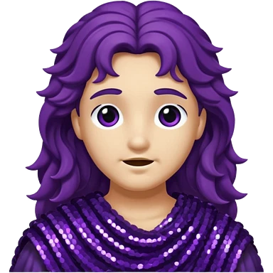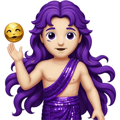 Pluto from Roman Deities with long deep purple wavy hair, deep purple sequin toga emoji