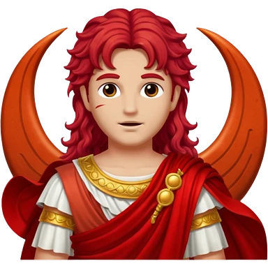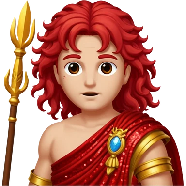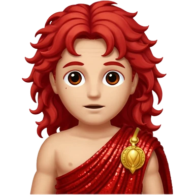 Mars from Roman Deities with long red wavy hair, red sequin toga emoji