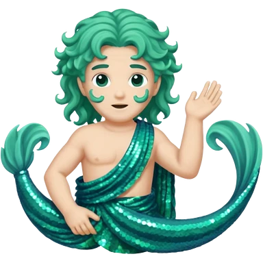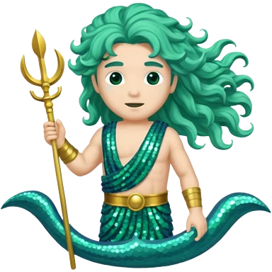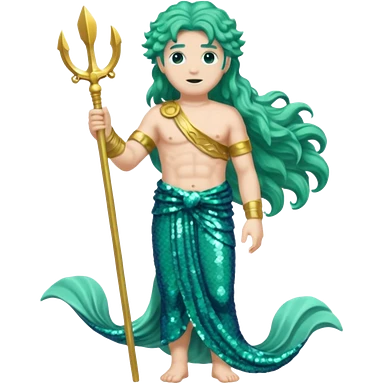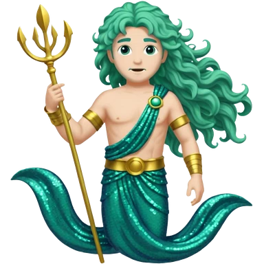 Neptune from Roman Deities with long sea green wavy hair, sea green sequin toga emoji