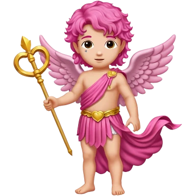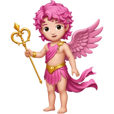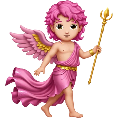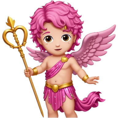 Cupid from Roman Deities with long pink wavy hair, pink sequin toga emoji