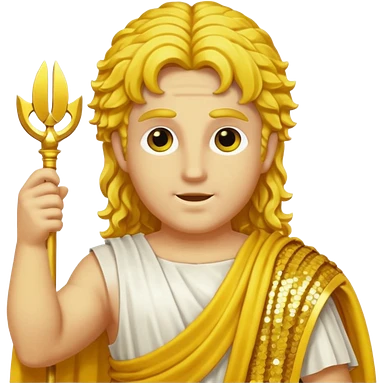 Mercury from Roman Deities with long gold wavy hair, gold sequin toga emoji | AI Emoji Generator