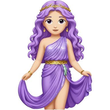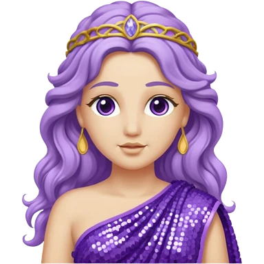 Aphrodite from Roman Deities with long lavender wavy hair, lavender sequin toga emoji