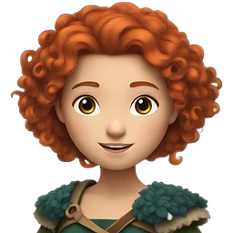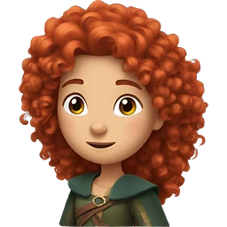 Merida from Brave with extremely long wild curly red hair and lots of freckles covering her face emoji
