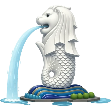 A majestic Merlion statue with a lion’s head and fish body, spouting a powerful stream of water from its mouth. emoji