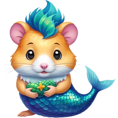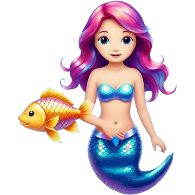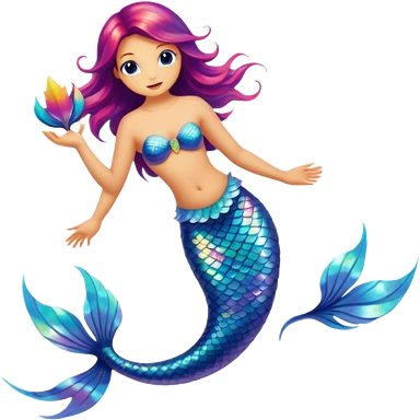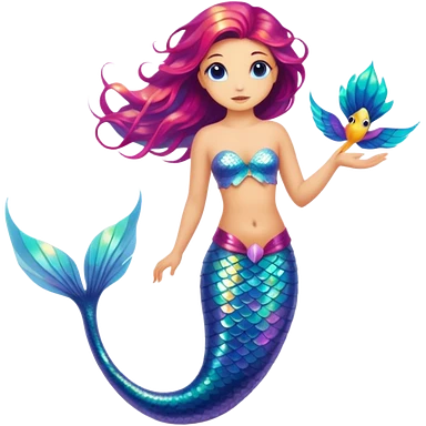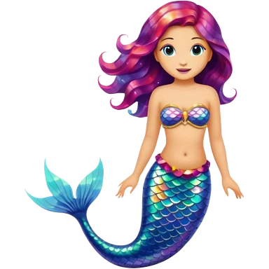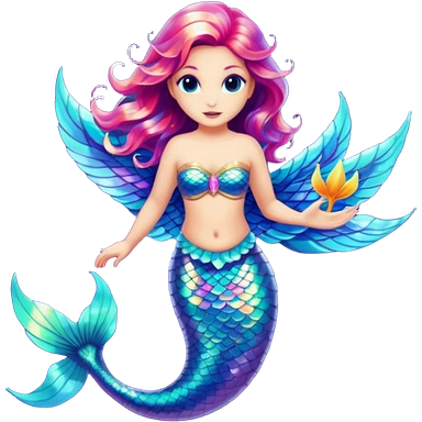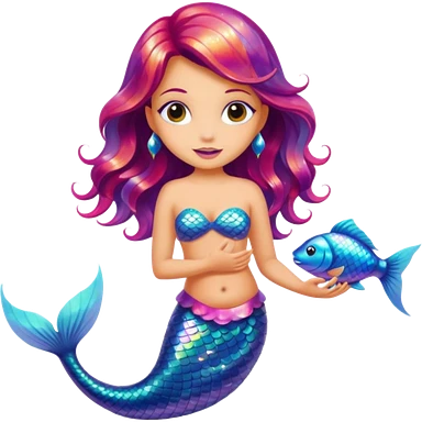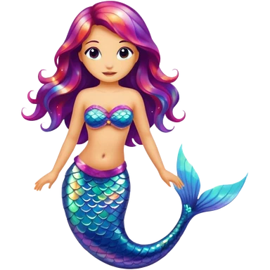 Mermaid with black hair and black and brown tail. Long hair covering chest. emoji