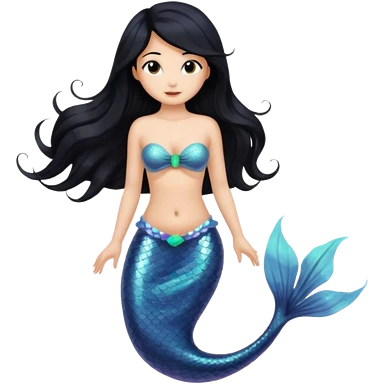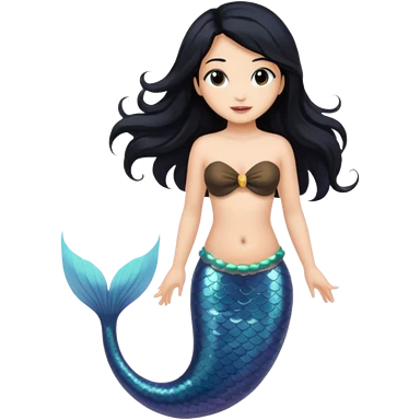 Mermaid with black hair and black and brown tail. Long hair covering chest. emoji