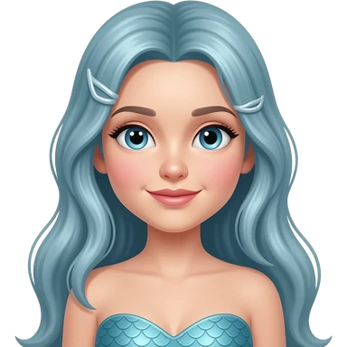 Cinematic Realistic Blue Hair Mermaid Portrait, head tilted playfully and inquisitively, showcasing a delicate, tropical form with finely detailed, flowing blue hair contrasting beautifully against her sun-kissed tanned skin. Her bright, curious eyes sparkle like sea gems under warm filtered light, rendered with lifelike clarity and soft underwater illumination—capturing the essence of a spirited mermaid poised to dance playfully amidst coral reefs. emoji