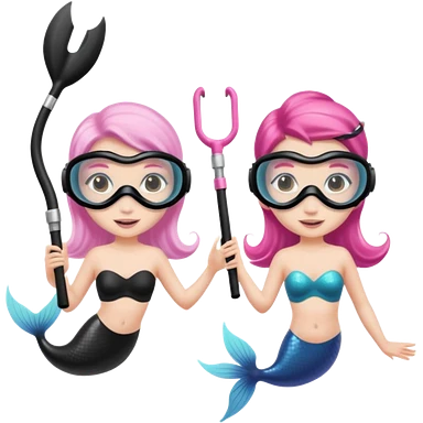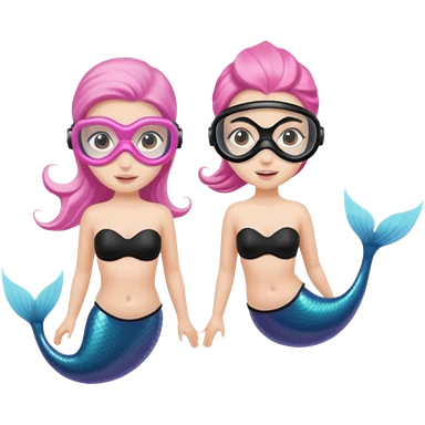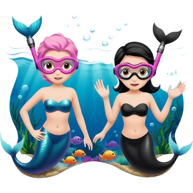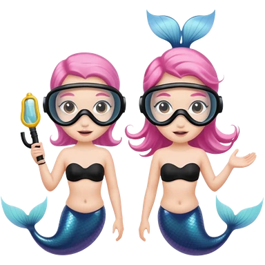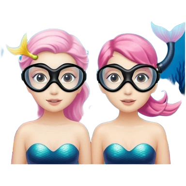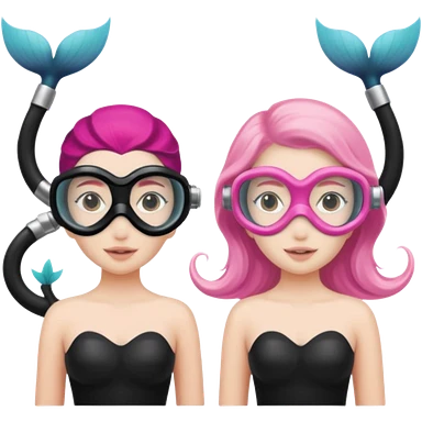 2 Mermaids one wearing a light pink snorkel mask and the other wearing black snorkel mask emoji
