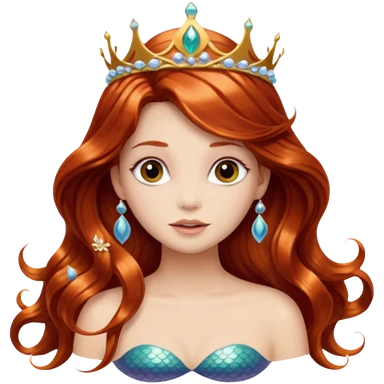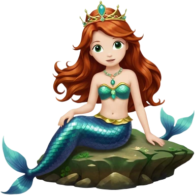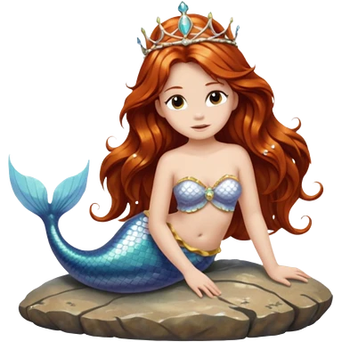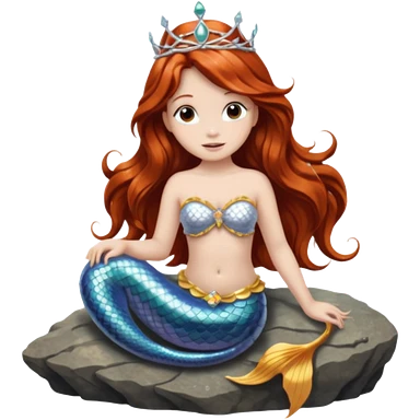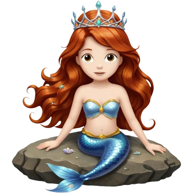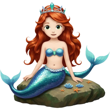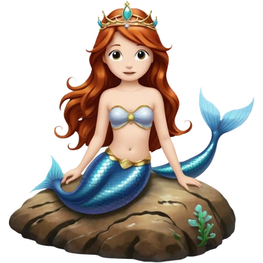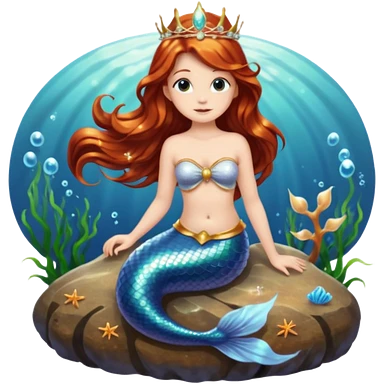 Mermaid with Shell Crown – Long flowing hair, shell tiar, sitting on rock emoji | AI Emoji Generator