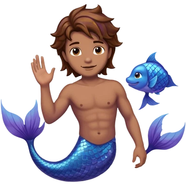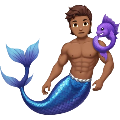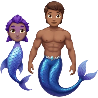 merman with brown hair brown eyes and medium to dark skin tone with a blueish purple tail emoji