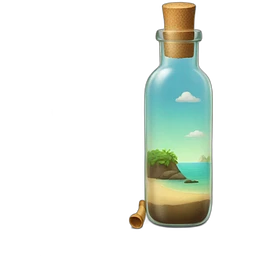 green old glass bottle with a rolled paper message inside like in movie emoji