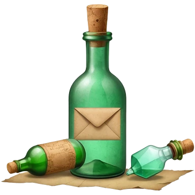 Message letter paper inside green Bottle emoji | AI Emoji Generator