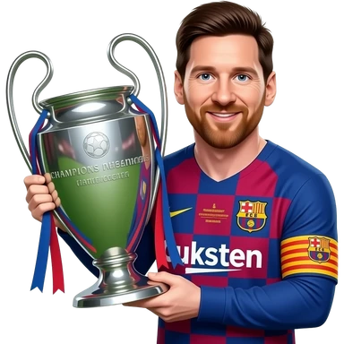 Messi barcelona with the champions league trophy emoji