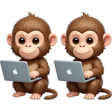 rois petits singes assis côte à côte qui tapent calmement sur des ordinateurs portables emoji