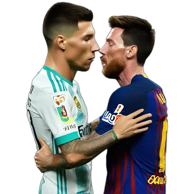 Realistic Leo Messi and realistic Cristiano Ronaldo kissing emoji