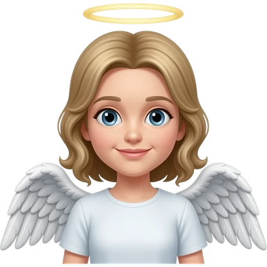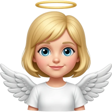 Guardian Angel from Christian Mythology with blue eyes, long blonde hair, white metallic toga emoji