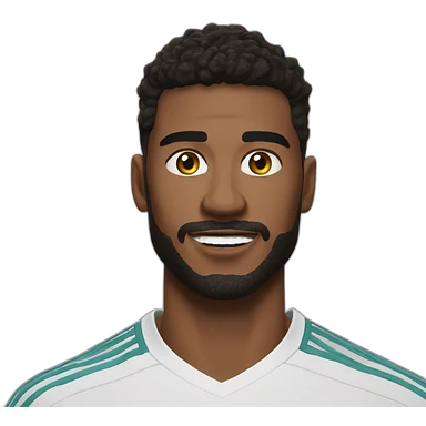 Fais un jeune homme au long cheveux boucle sans barbe avec un emoji du maillot du real madrid emoji