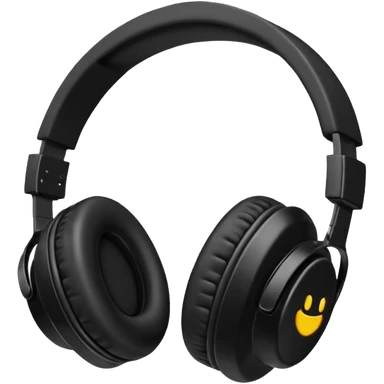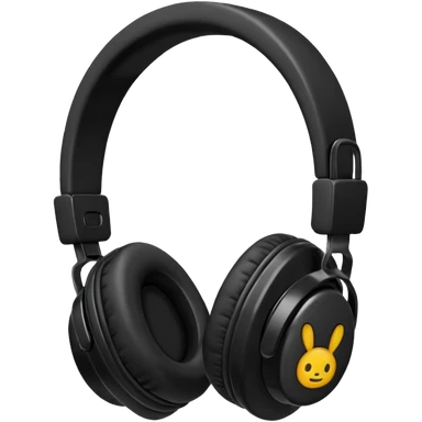 a grey anthropomorphic cat with one blue eye and one orange eye with messy black emo hair wearing yellow headphones emoji