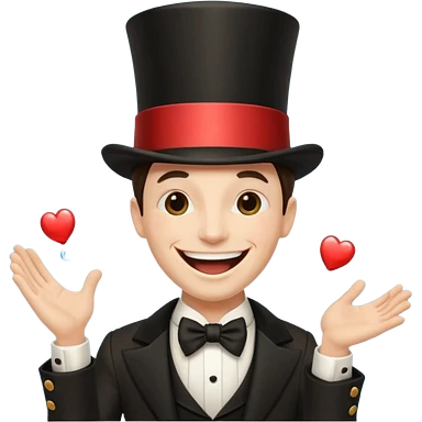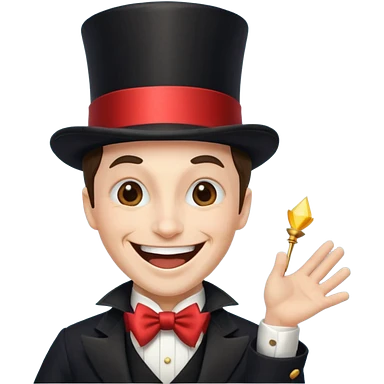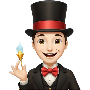 circus magician portrait, head and shoulders only, top hat, cape collar, confident smile, magical vibe, 3D cartoon, mobile game icon style, clean background, no text, no watermark emoji