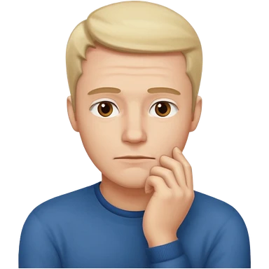 boy thinking with one hand on his chin emoji