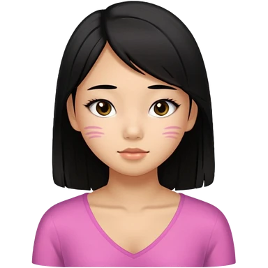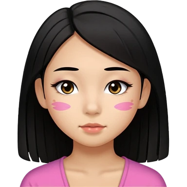 a tan chinese-american 15 year old girl with straight black hair down to her chest. mascara and a little blush. emoji