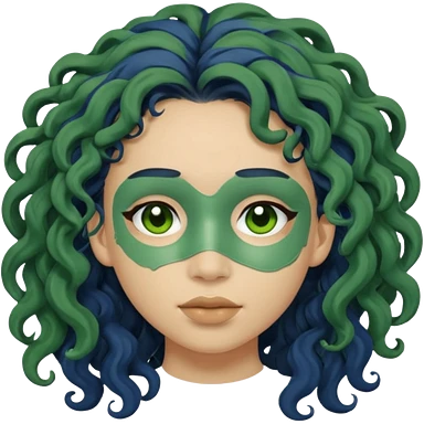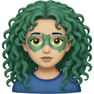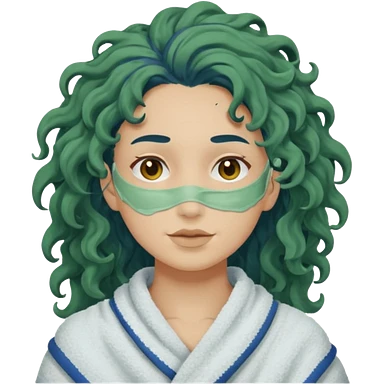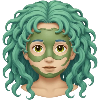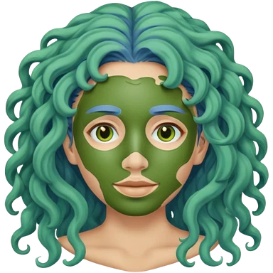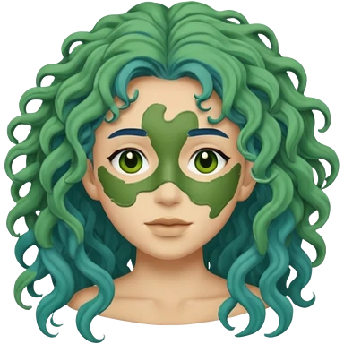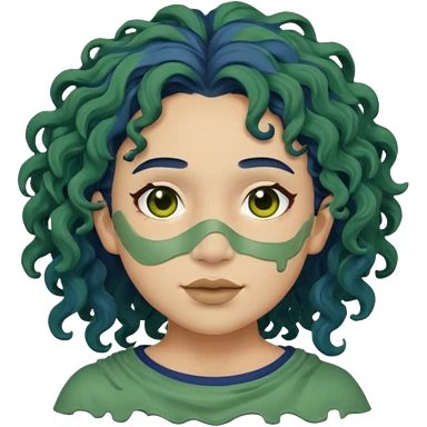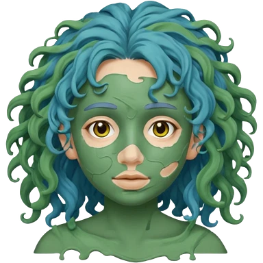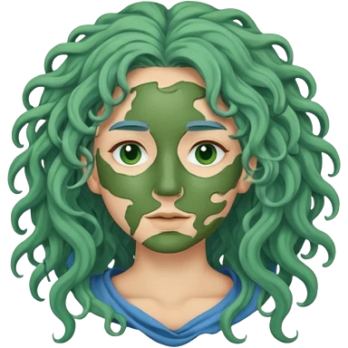 messy green clay mask curly long dark blue hair emoji