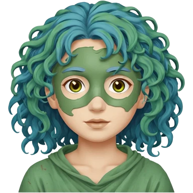 messy green clay mask curly long very blue hair emoji