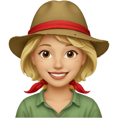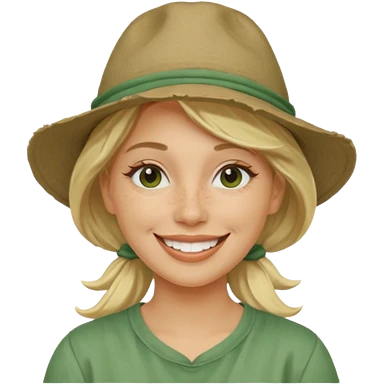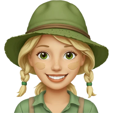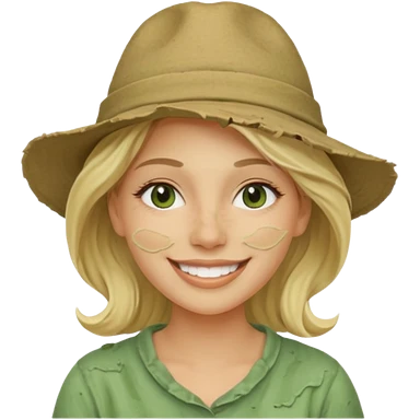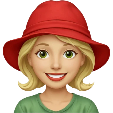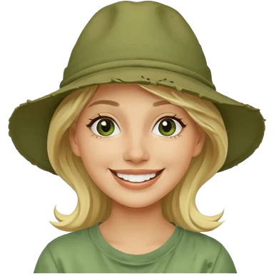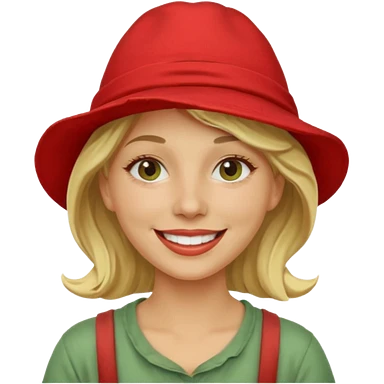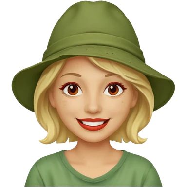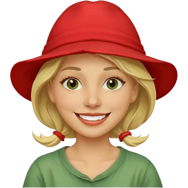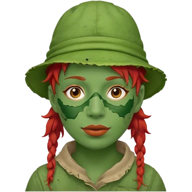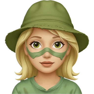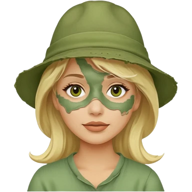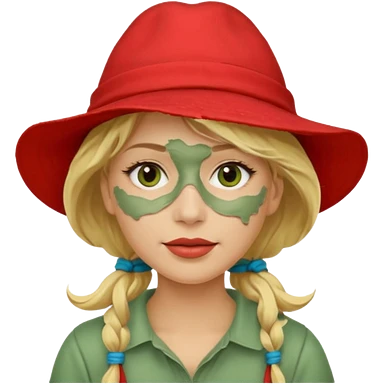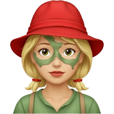 messy green clay mask and red tourist hat blond braided woman big eyes smiling and clay mask emoji | AI Emoji Generator