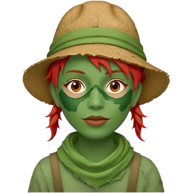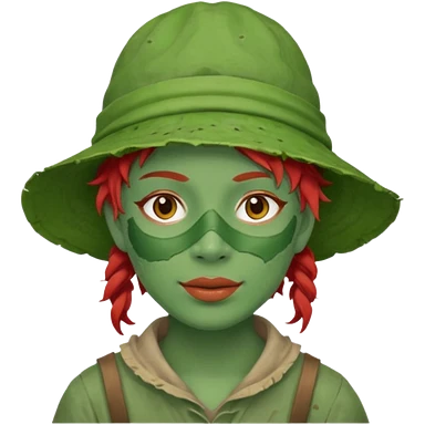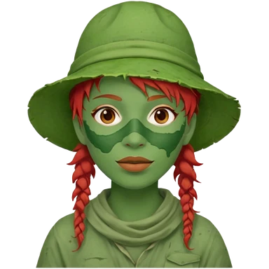 messy green full face green clay mask and tourist hat red hair emoji