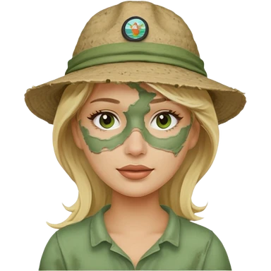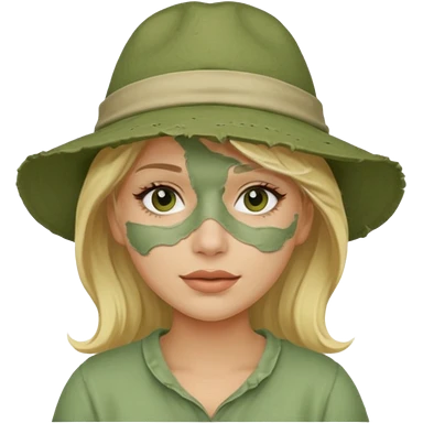 messy green full face clay mask and tourist hat blond woman emoji