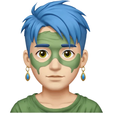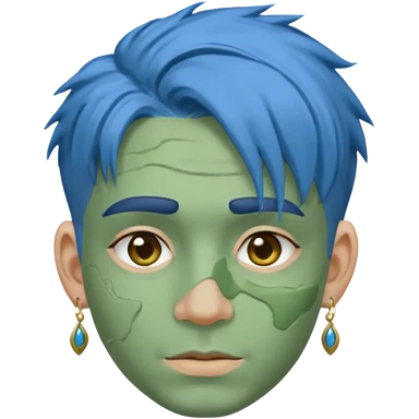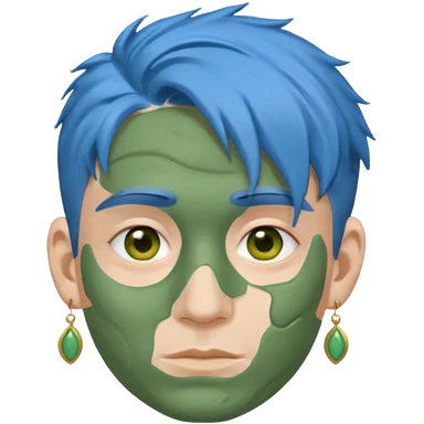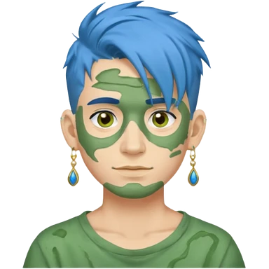 messy green clay mask man with earrings and blue hair emoji | AI Emoji Generator