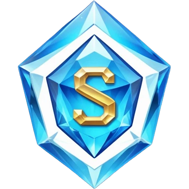 Create a custom emoji badge featuring a stylized, glossy letter “S”. Style it after the Diamond rank from League of Legends. Use crystalline blue tones, sharp reflections, faceted textures, and a high-end glowing frame. emoji