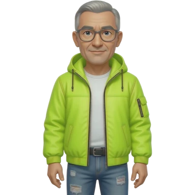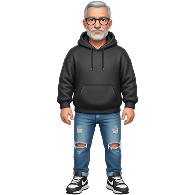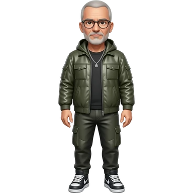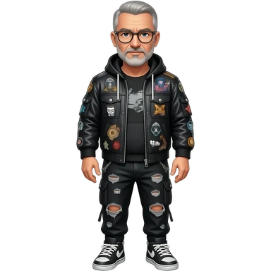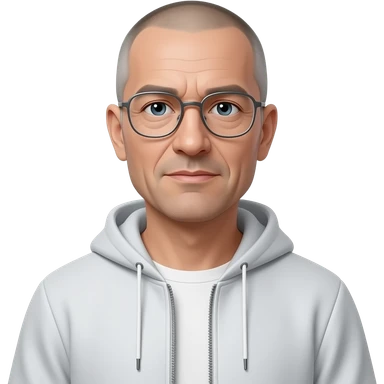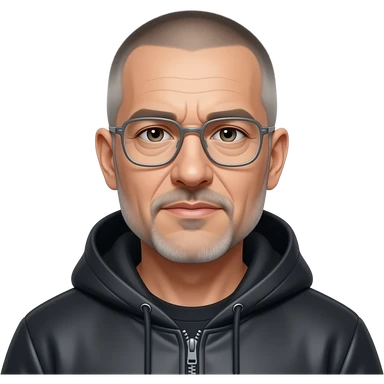 metal-framed glasses ery entellectual man, 65 years old, street wear stubble, shaved short with clippers emoji | AI Emoji Generator