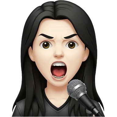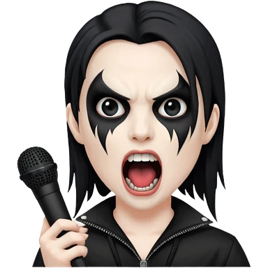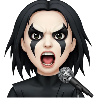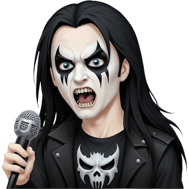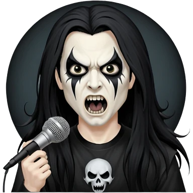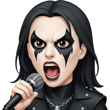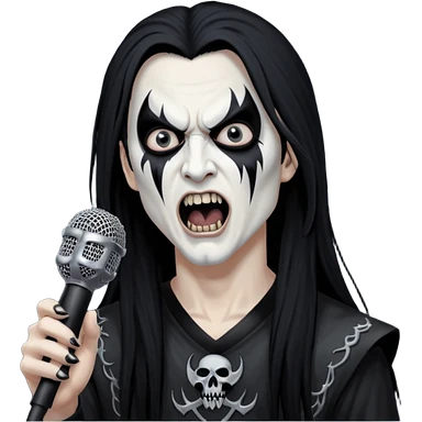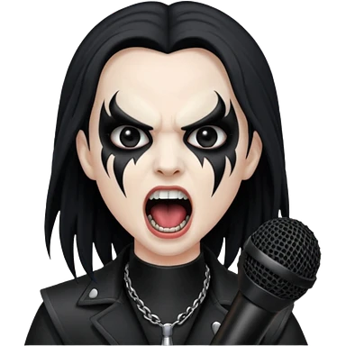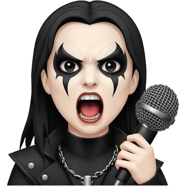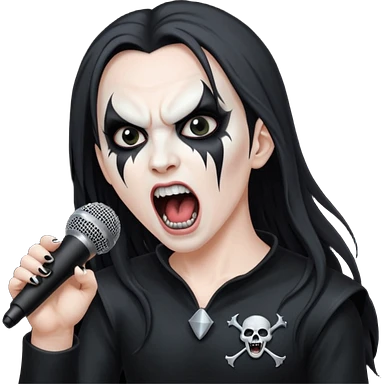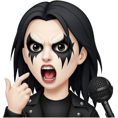Black metal musician with corpse paint, long hair, screaming with mirophone emoji