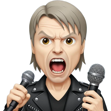 bruce dickinson, metal musician, screaming with mirophone emoji