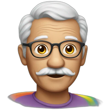 white skinned grandpa with short white hair, blue eyes and a blue tee shirt emoji