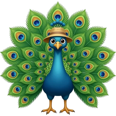 A peacock wearing a bucket hat emoji