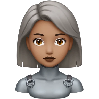 Woman holding one metal shovel with pale skin and hair brown highlights long wavy emoji