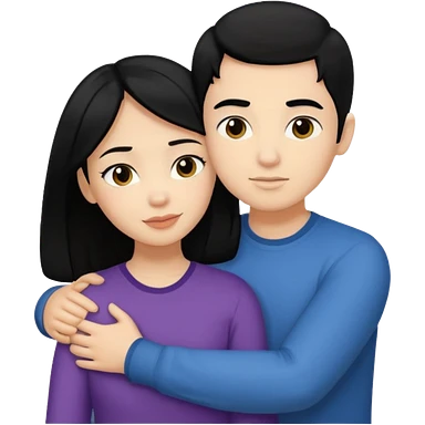 Light skinned woman black hair light skin boy black hair hugging emoji
