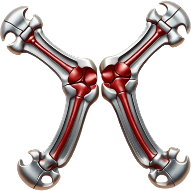 Emoji-style metallic anatomic bones with traces of blood, steel texture, dark dramatic tone, clean background emoji