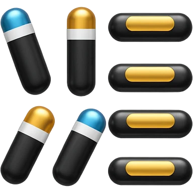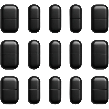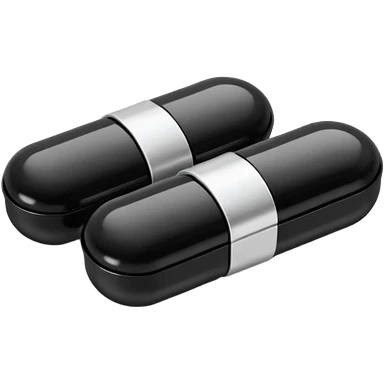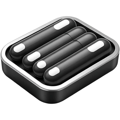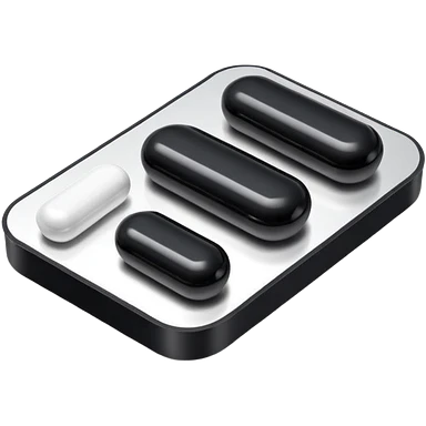 Minimalistic futuristic black medicine pills pack emoji, metallic black and white, reflective sleek surfaces, flat vector design, high-tech clean UI icon emoji