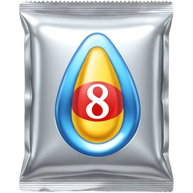 condom with a chrome-metallic pack and 8eight written in the middle emoji