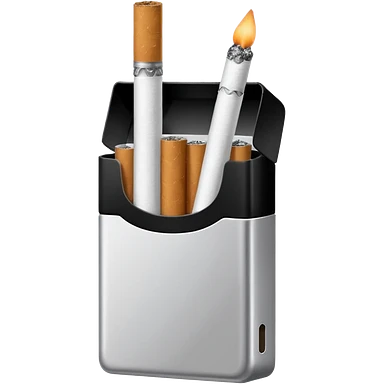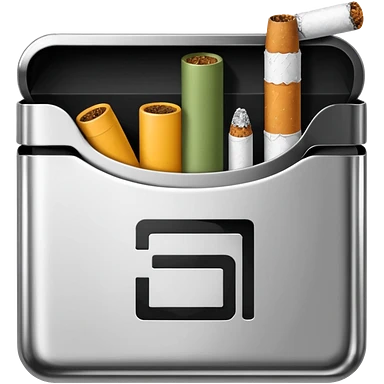 Minimalistic cigarette pack emoji, metallic black and white emoji