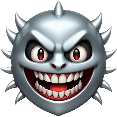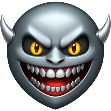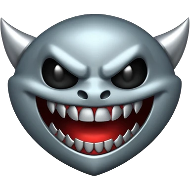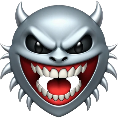 Stylized emoji icon of metallic teeth with sharp fangs, chrome texture, dark shadows, aggressive look emoji