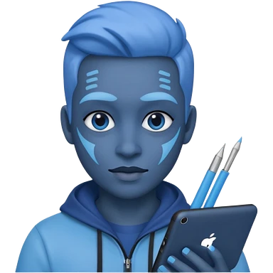 person with digital toolkit, digital vibes, blue emoji